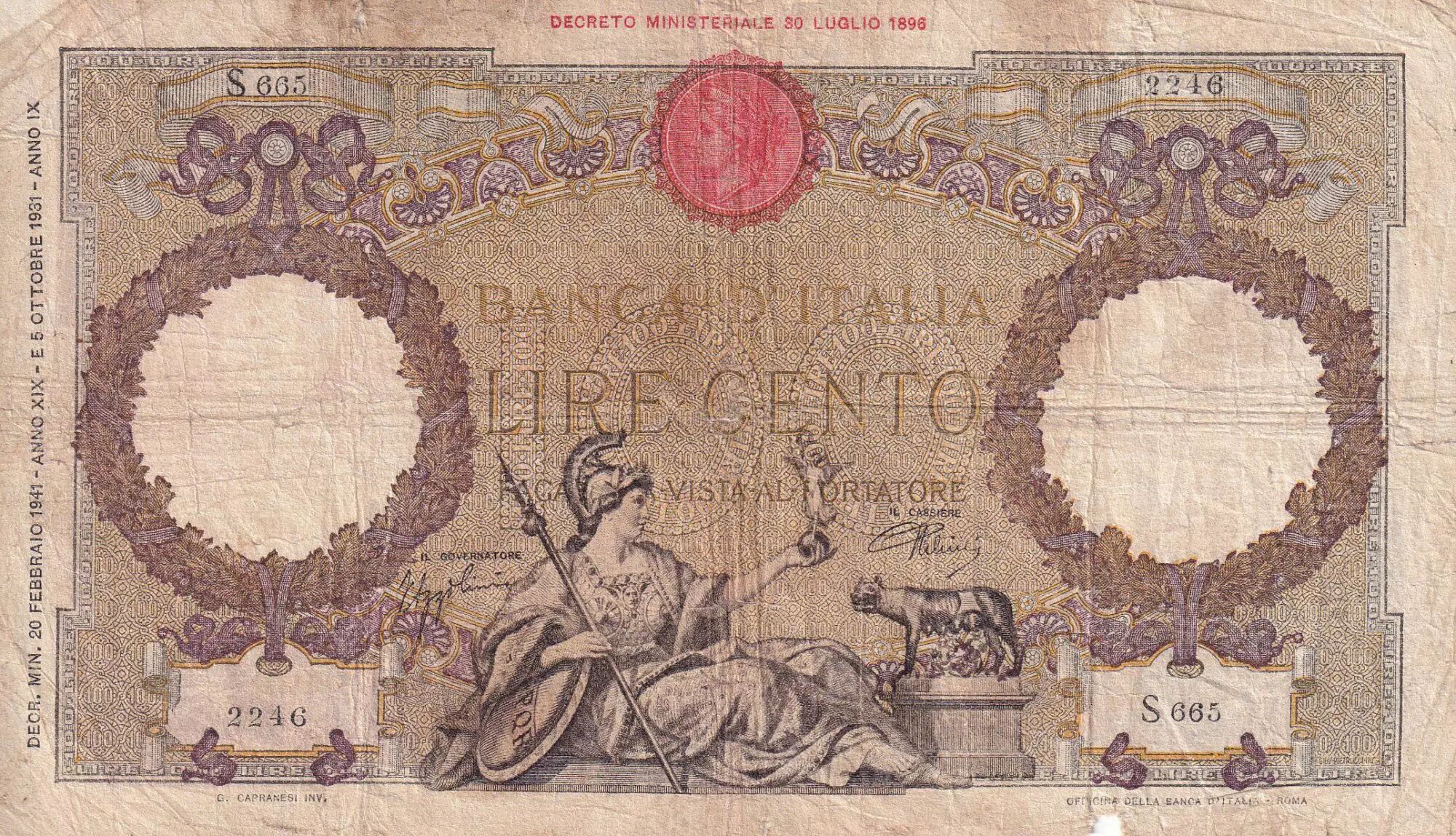 Accueil > Archivage > Italie 100 Lires - Louve - Aigle - 05-10-1931 - Série S.665 - P.55a