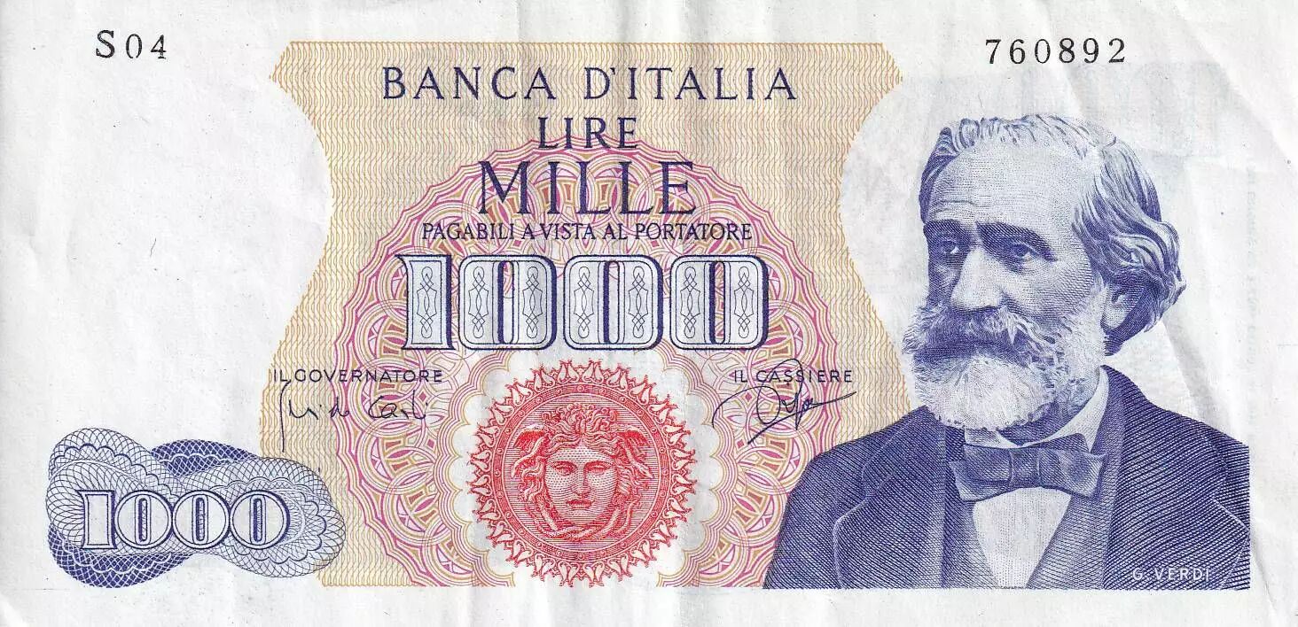 Accueil > Archivage > Italie 1000 Lire - G. Verdi - 1962 - Série S 04 - TTB - P.96a