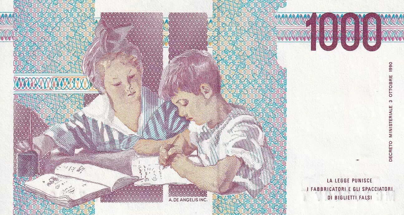 Billet Italie 1000 Lire - M. Montessori - Étudiants - 1990 - Série MC - P.114