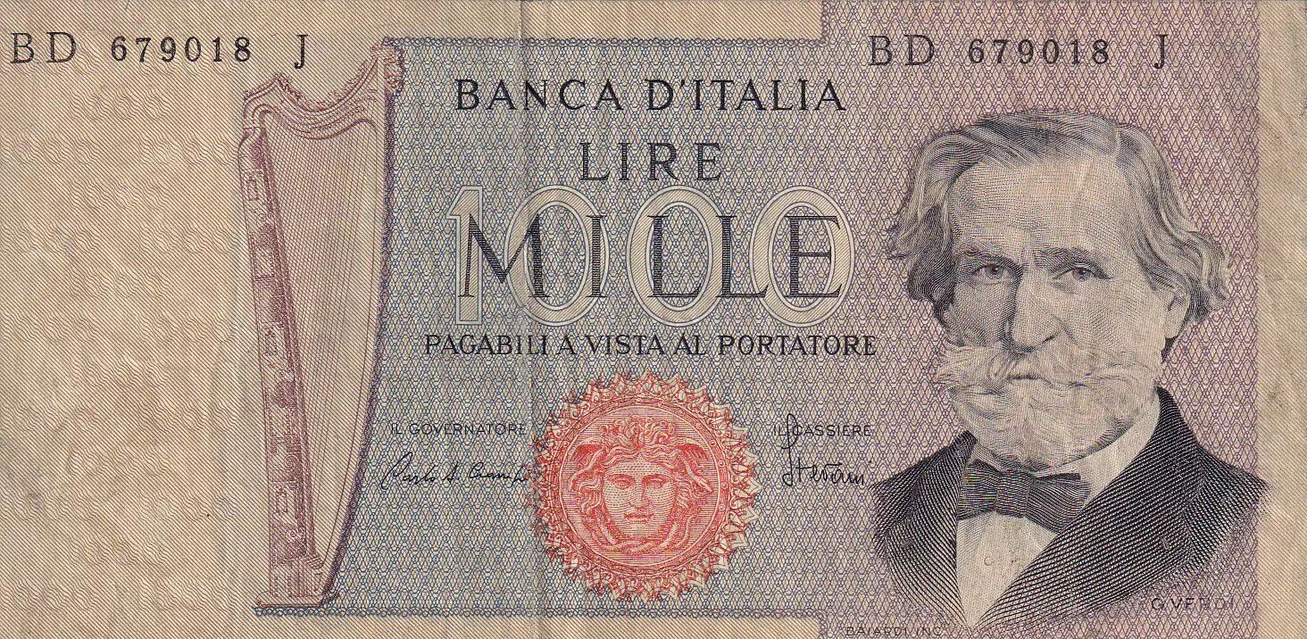 Accueil > Archivage > Italie 1000 Lire - Verdi - 1980 - Série BD - P.101g