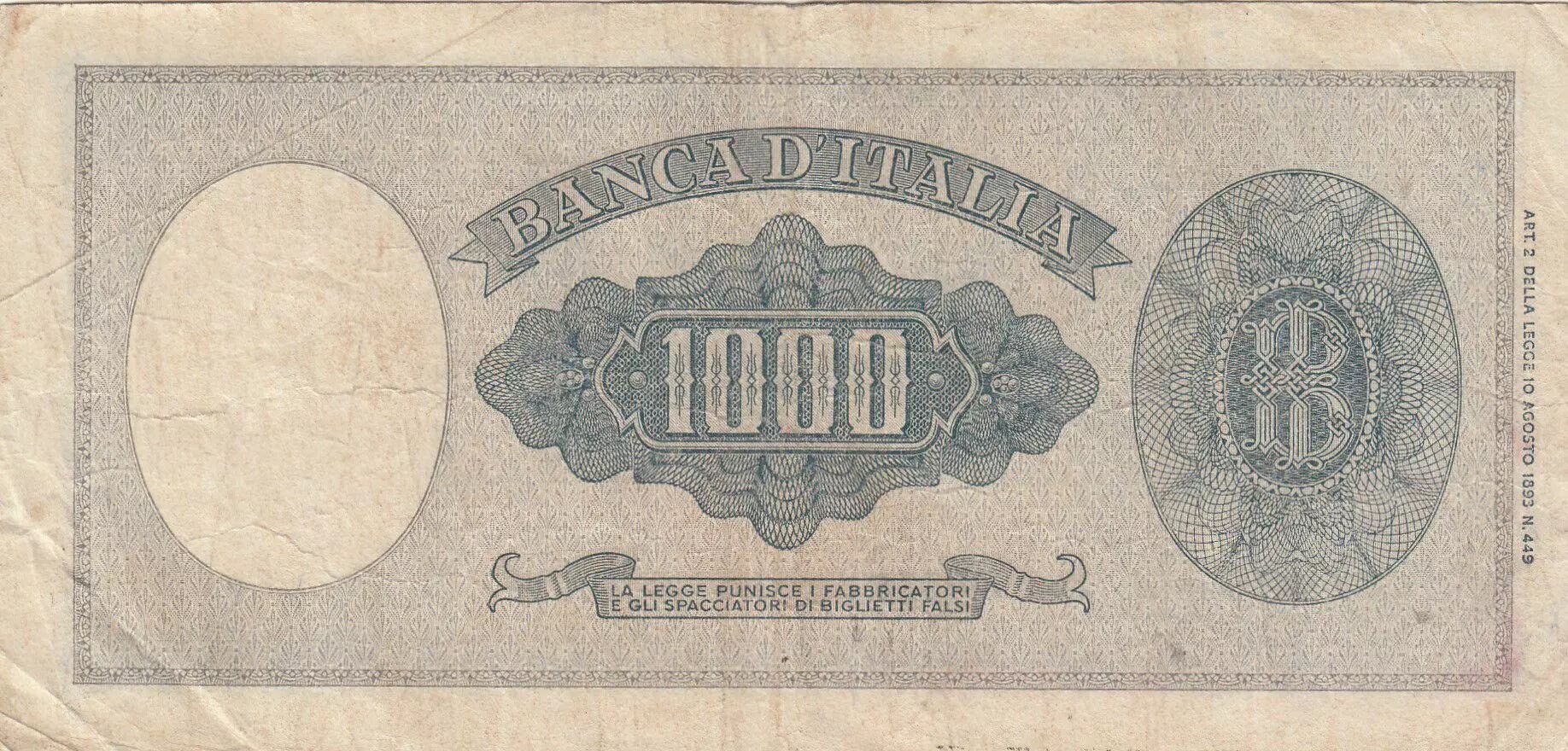 Accueil > Archivage > archivage-Billets du Monde > Italie 1000 Lires Italia - 1948 - TTB - Série A.197 - P.88a