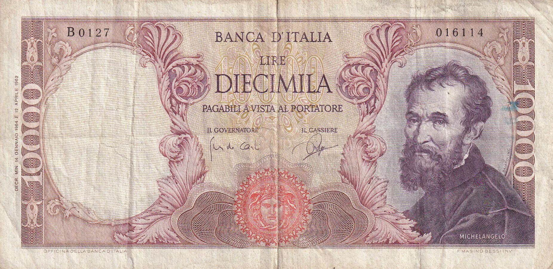 Accueil > Archivage > Italie 10000 Lire - Michelangelo - 14-01-1964 - Série B - P.97b