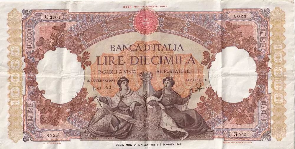 Accueil > Archivage > archivage-Billets du Monde > Italie 10000 Lire - Venise et Gênes assises - 24-03-1962 - Série G