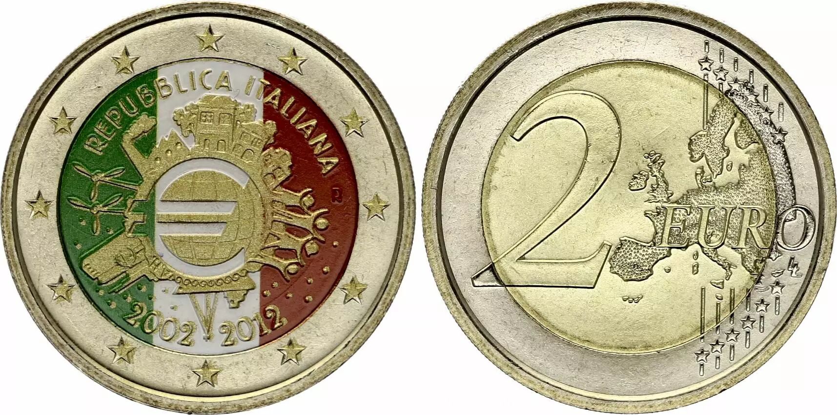 Pièce Italie 2 Euros - 10 ans de l'Euro - Colorisée - 2012