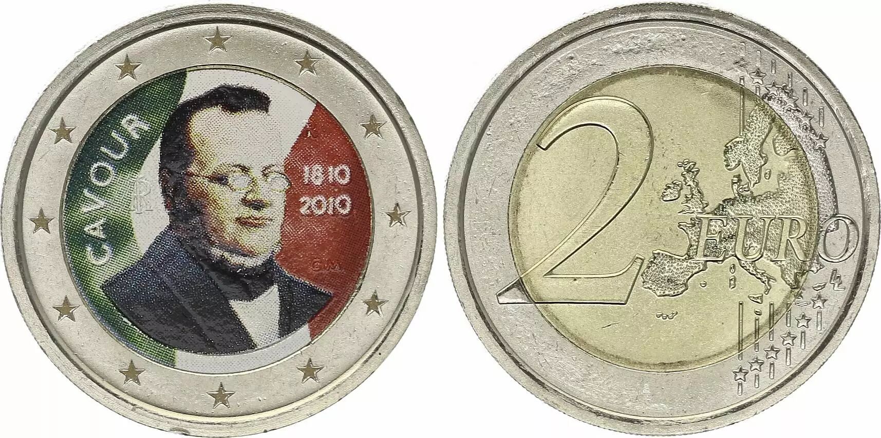 Pièce Italie 2 Euros - Cavour - Colorisée - 2010