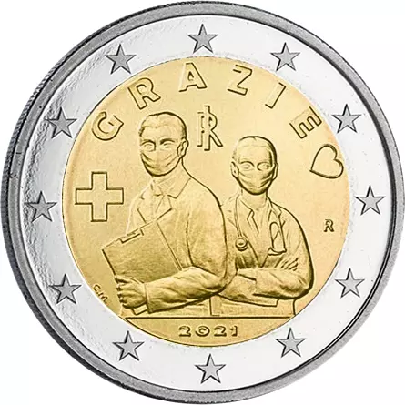 Pièce Italie 2 Euros Commémo. BE ITALIE 2021 - Grazie (Merci)