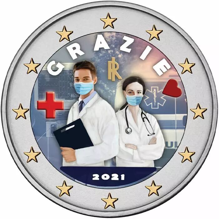 Pièce Italie 2 Euros Commémo. couleur ITALIE 2021 - Grazie (Merci) - version 1