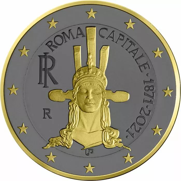 Pièce Italie 2 Euros Commémo. Ruthénium & Or ITALIE 2021 - 150 ans de Rome Capitale de l'Italie