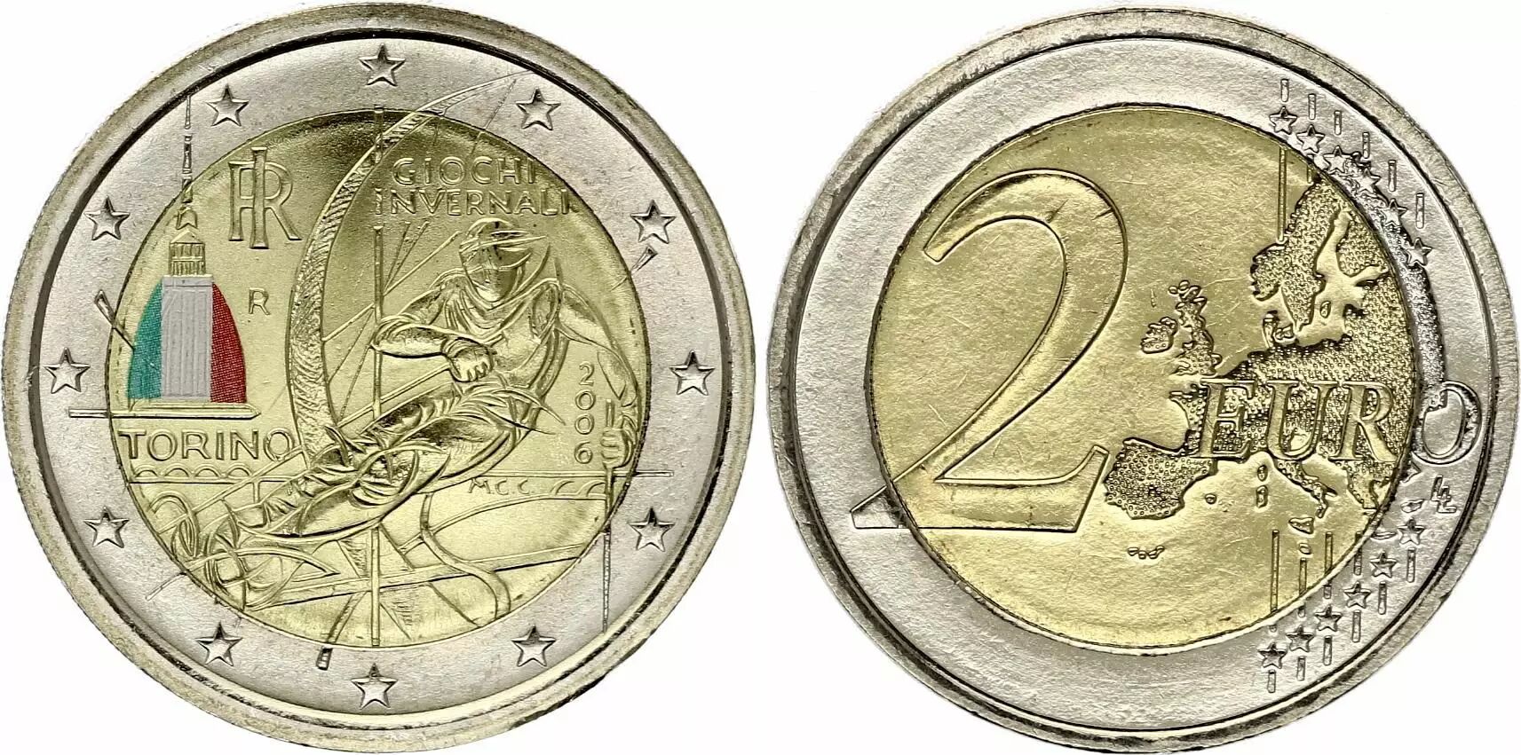 Pièce Italie 2 Euros - Jeux Olympiques d'Hiver de Turin - Colorisée - 2006