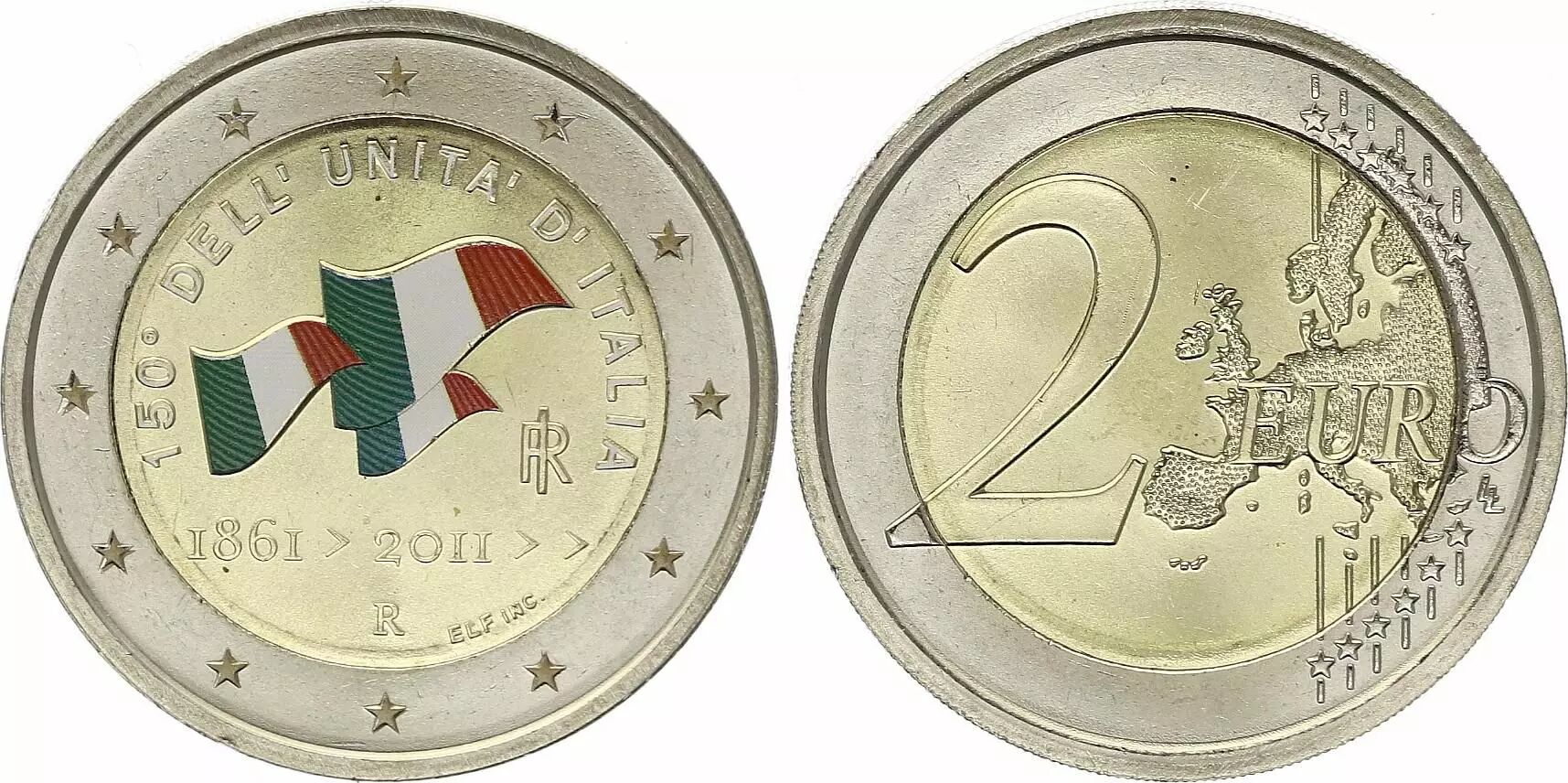 Pièce Italie 2 Euros - Unification italienne - Colorisée - 2011
