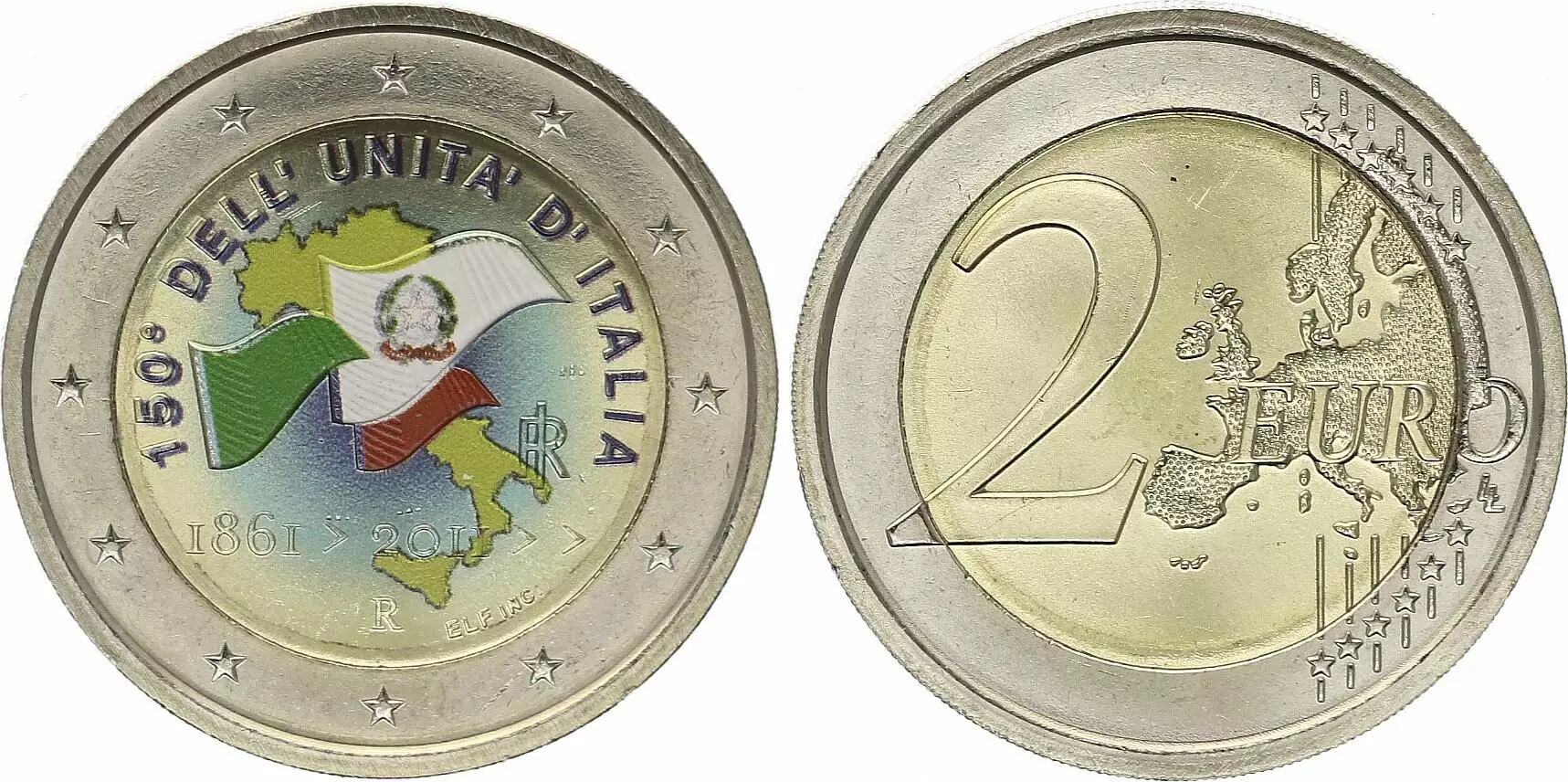 Pièce Italie 2 Euros - Unification italienne - Colorisée - 2011