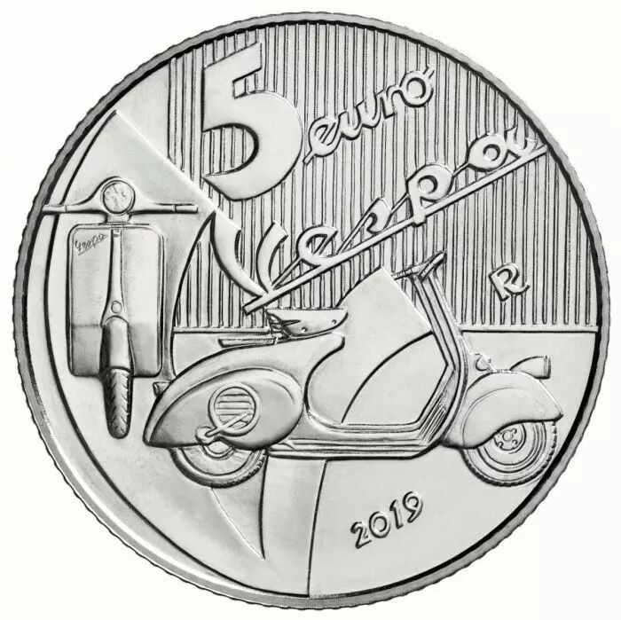 Pièce Italie 5 Euros Argent Couleur ITALIE 2019 - Vespa rouge - Excellence italienne