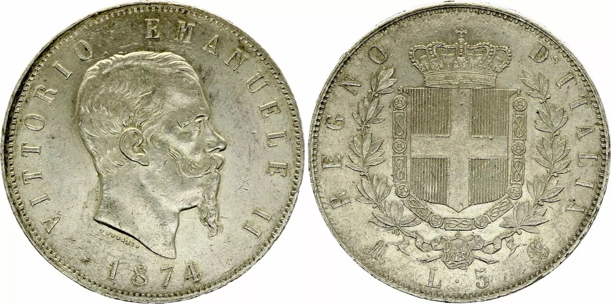 Accueil > > Italie 5 Lire, Victor Emmanuel II - Armoiries - 1874 M BN