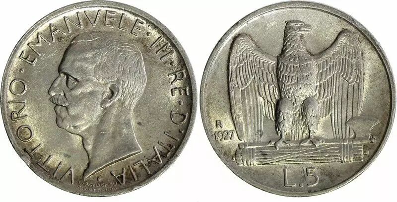 Pièce Italie 5 Lire Vittorio Emanuele III - 1927 R Rome