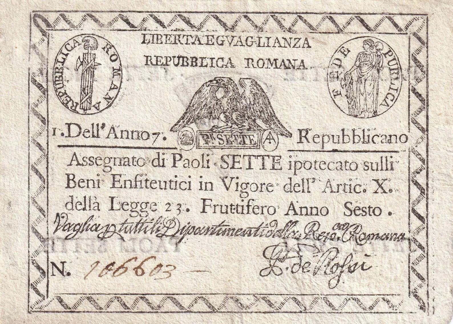 Billet Italie 7 Paoli Repubblica Romana - 1798