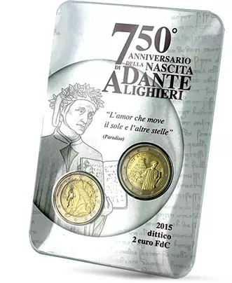 Pièce Italie Coffret 750 ans de Dante Alighieri - 2 Euros et 2 Euro Commémo. BU ITALIE 2015