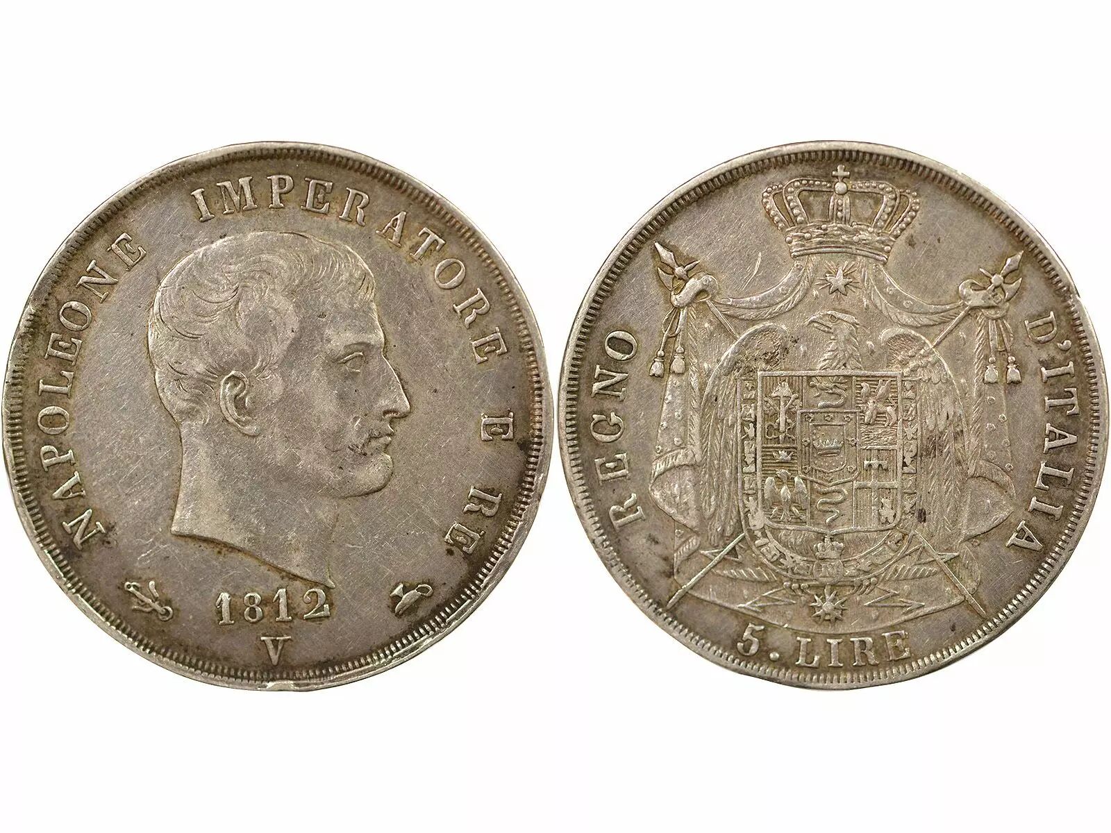 Pièce Italie Napoléon I - 5 Lire Argent - 1812 V Venise