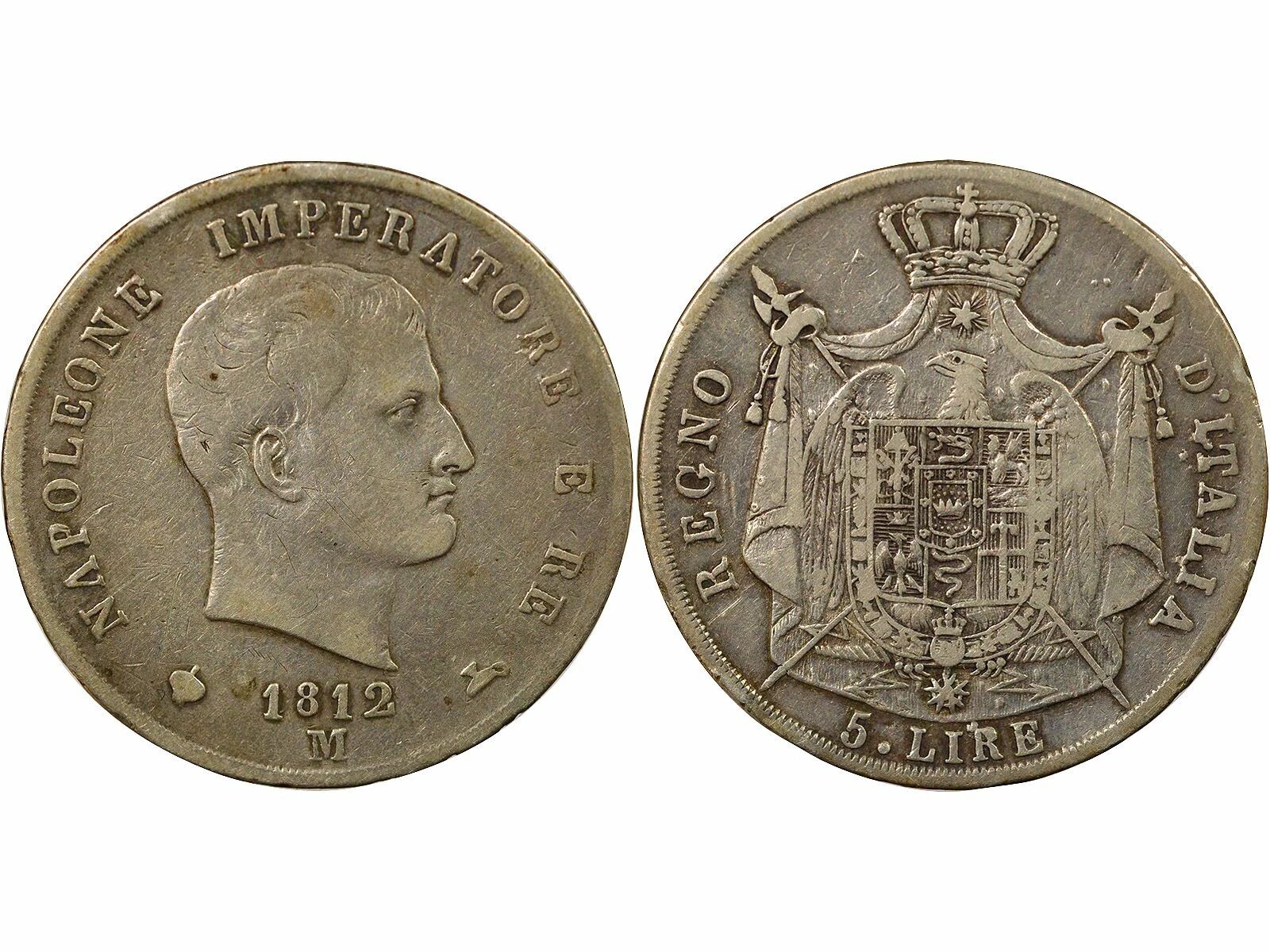 Pièce Italie Napoléon Ier - 5 Lire Argent - 1812 M Milan