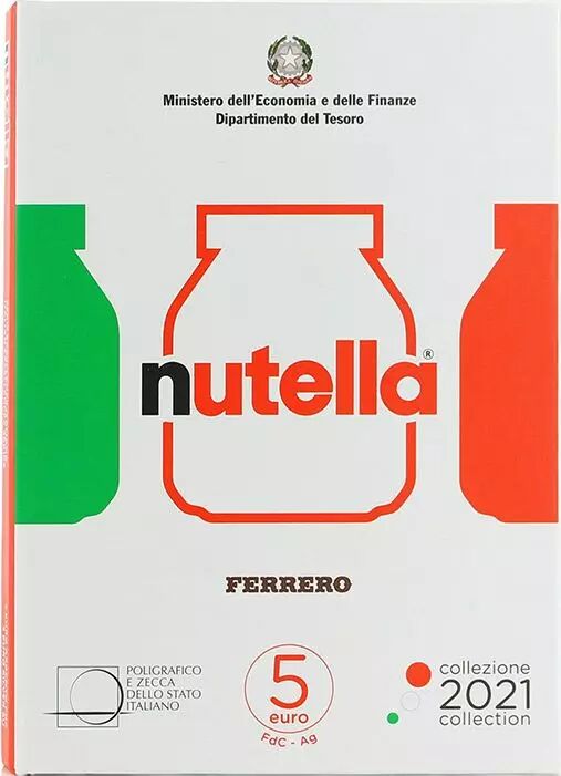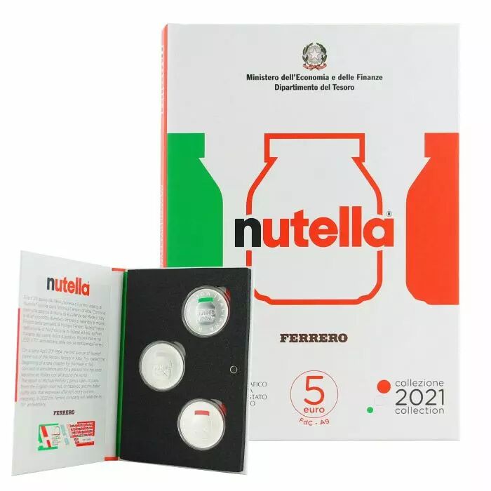 Pièce Italie Nutella - Coffret Triptyque Vert blanc rouge - 3 X 5 Euros Argent Couleur ITALIE 2021 - Excellence italienne