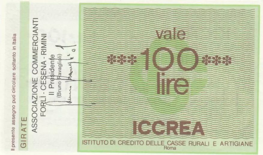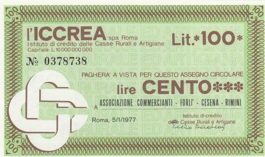Banknote Italy 100 Lire ICCREA - Marketers of REMINI - 1977 - UNC