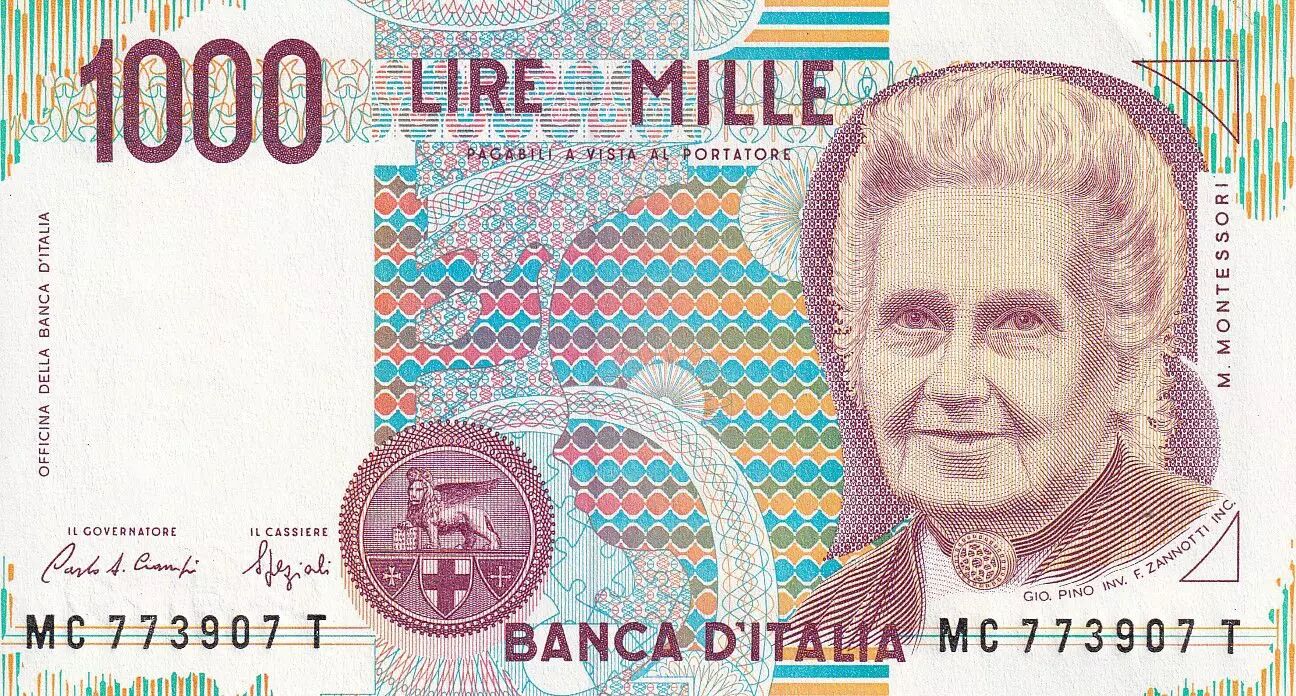 Banknote Italy 1000 Lire - M. Montessori - Students - 1990 - Serial MC - P.114