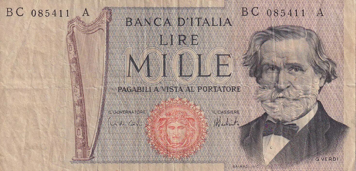 Home > > Italy 1000 Lire - Verdi - 1975 - Serial BC - P.101d
