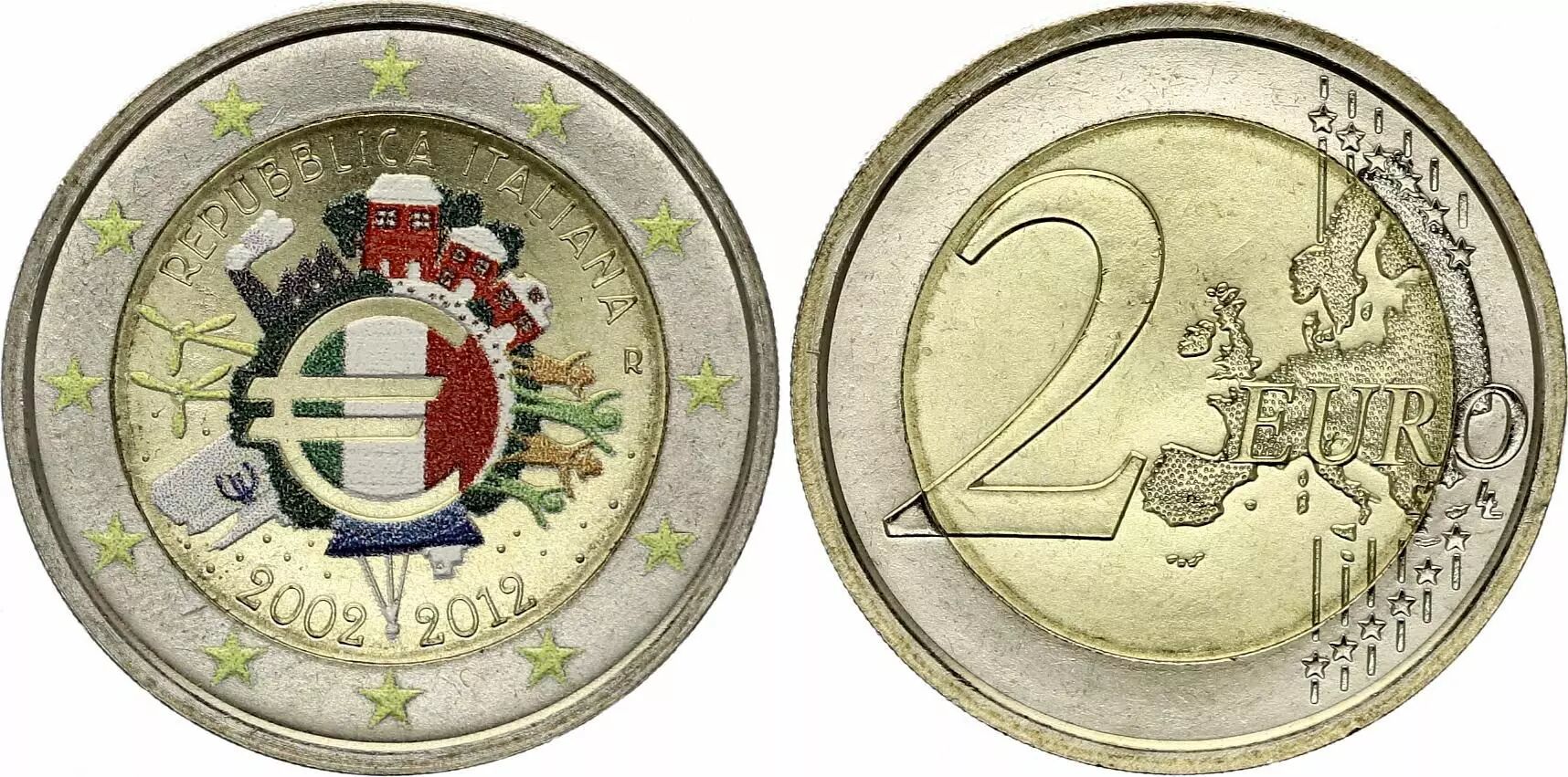 Coin Italy 2 Euros - 10 years of the Euro - Colorised - 2012