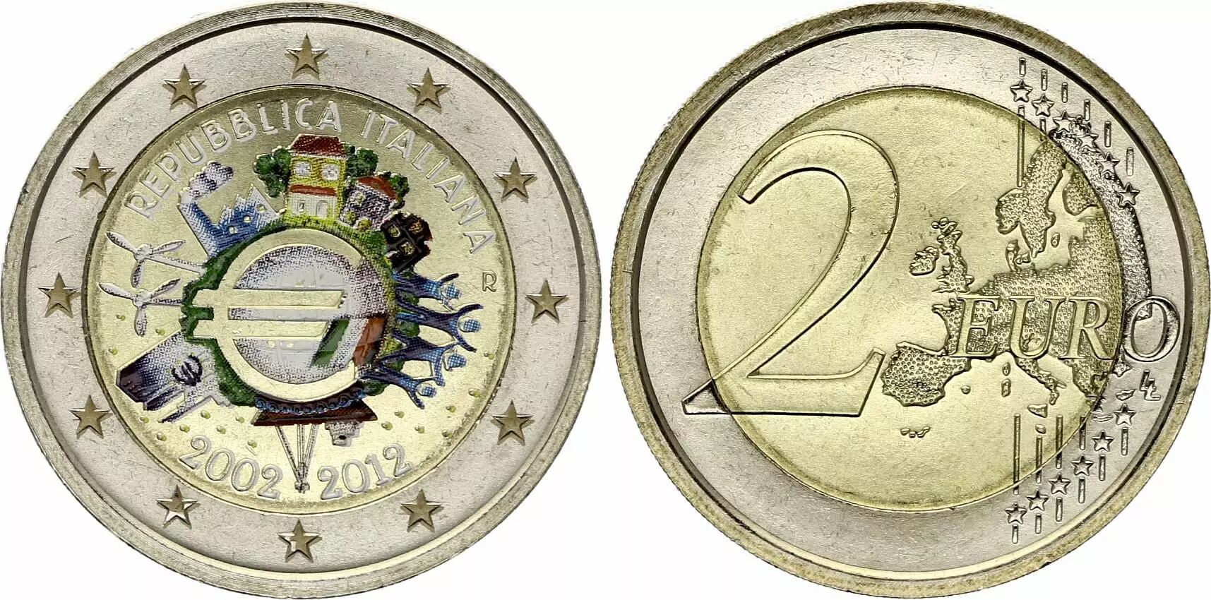 Coin Italy 2 Euros - 10 years of the Euro - Colorised - 2012