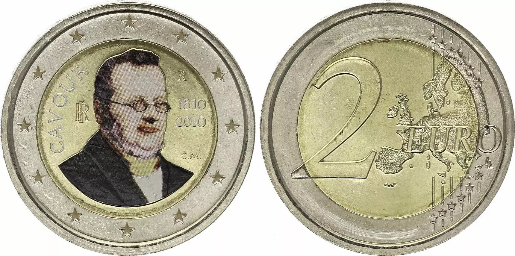 Coin Italy 2 Euros - Cavour - Colorised - 2010