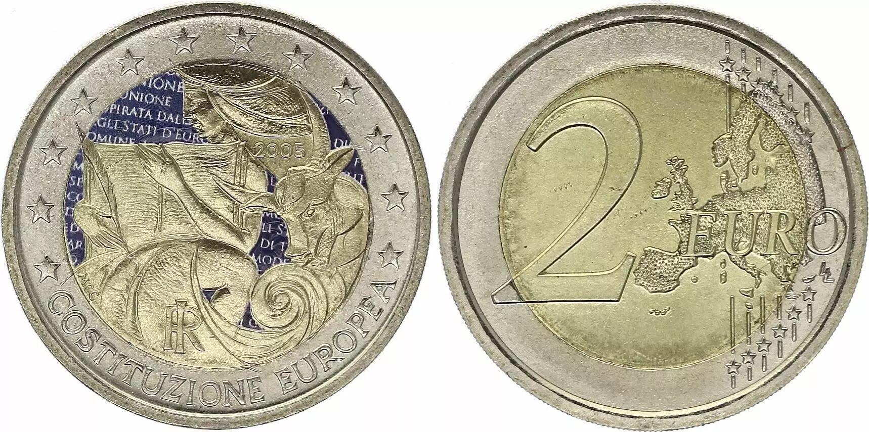 Coin Italy 2 Euros - European Constitution - Colorised - 2005