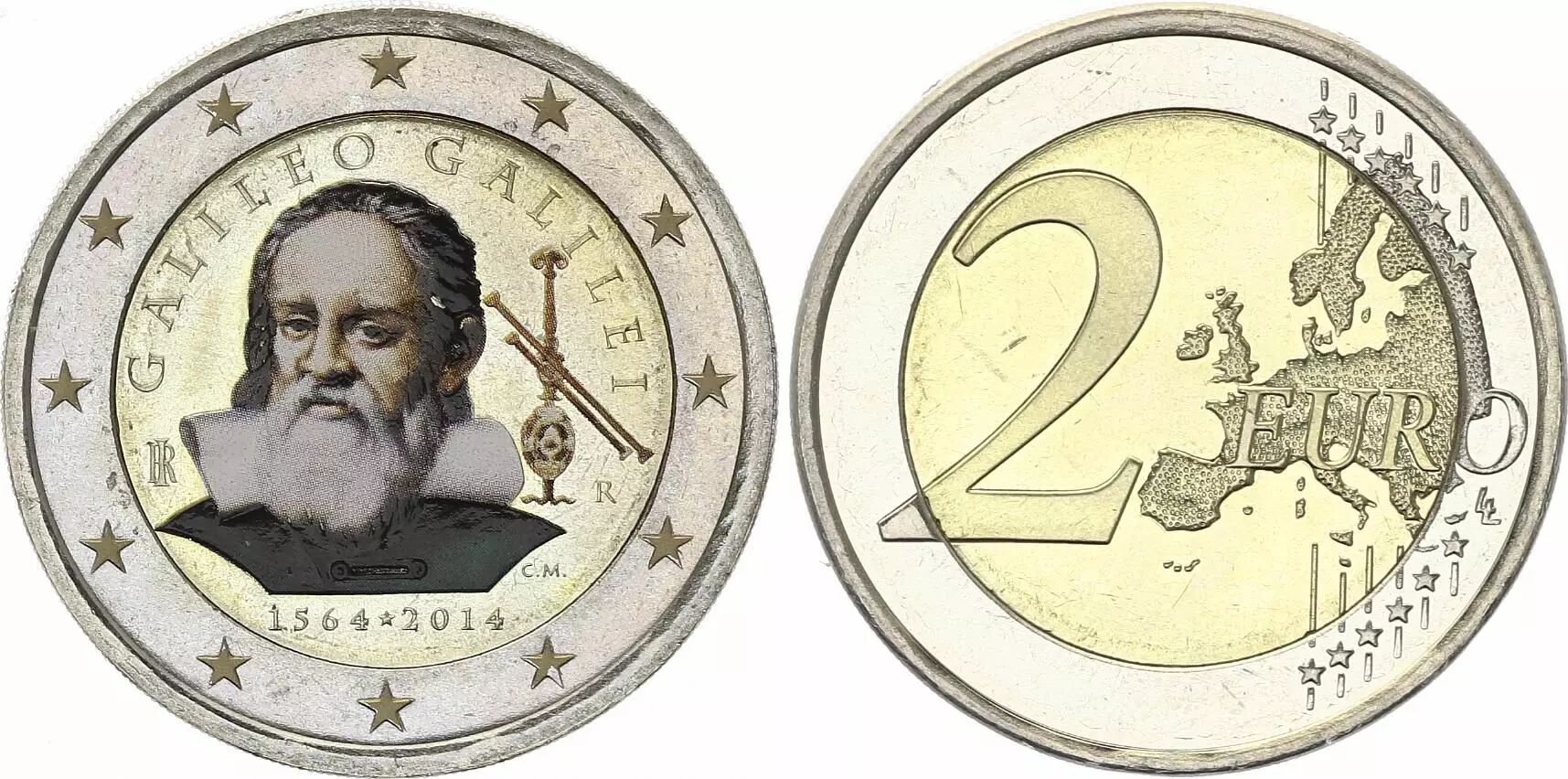 Home > > Italy 2 Euros - Galileo - Colorised - 2014