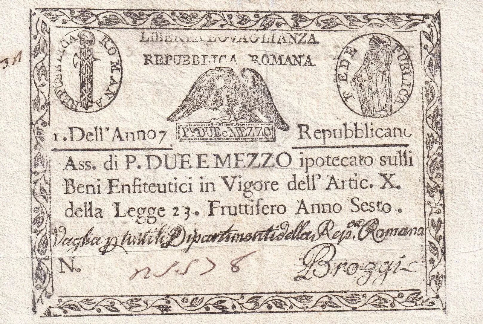 Banknote Italy 2 Paoli 1/2 Repubblica Romana - 1798