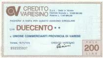 Banknote Italy 200 Lires Credito Varesino - 1976 - UNC