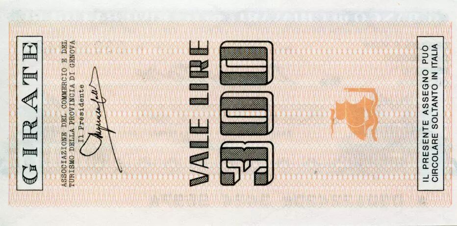 Home > World Banknotes > Checks and Traveler's Checks > Italy 300 Lire Banco di Chiavari e della Riviera Ligure - 1977 - Genova - UNC