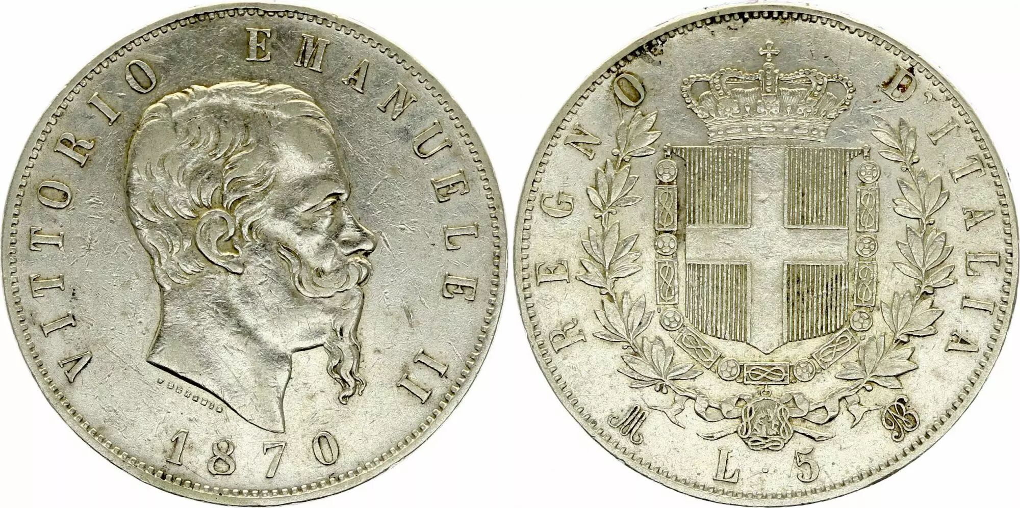 Coin Italy 5 Lire, Victor Emmanuel II - Arms - 1870 M BN