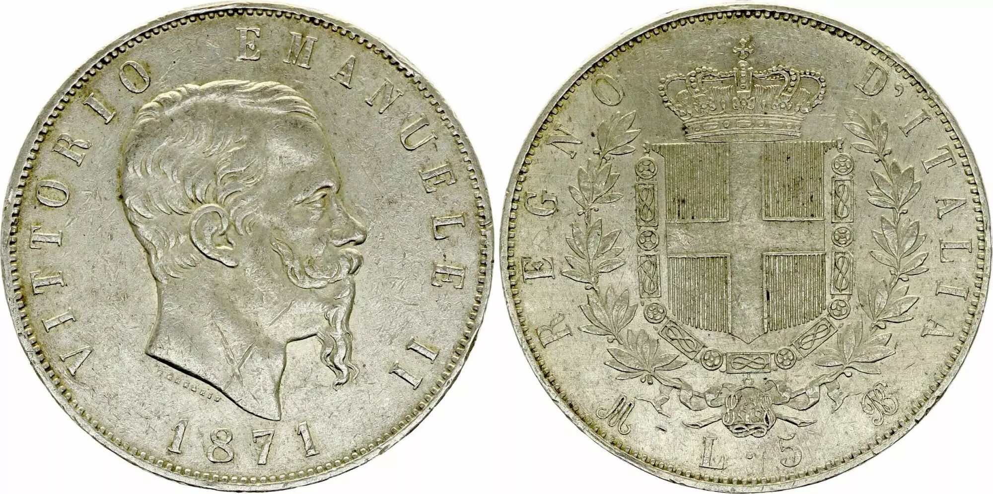 Coin Italy 5 Lire, Victor Emmanuel II - Arms - 1871 M BN