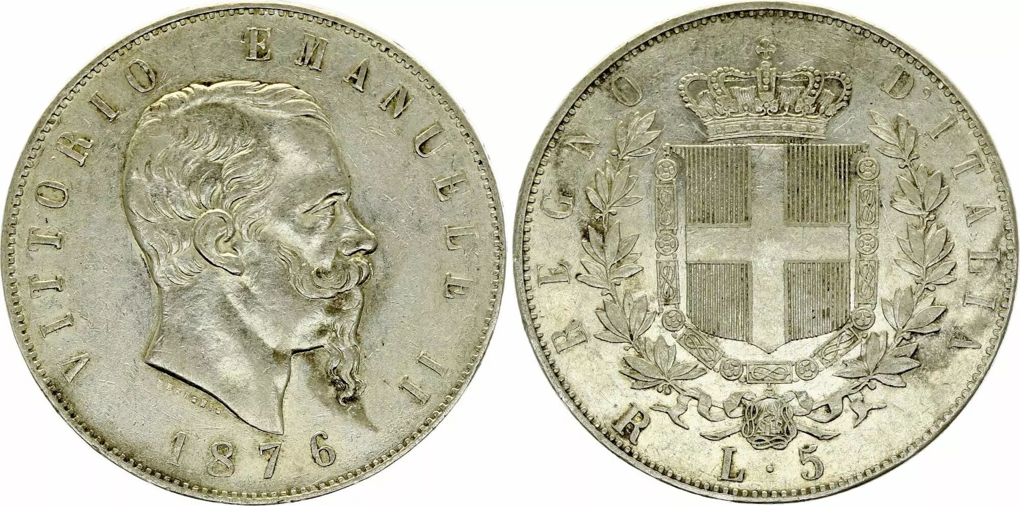 Coin Italy 5 Lire, Victor Emmanuel II - Arms - 1876 R
