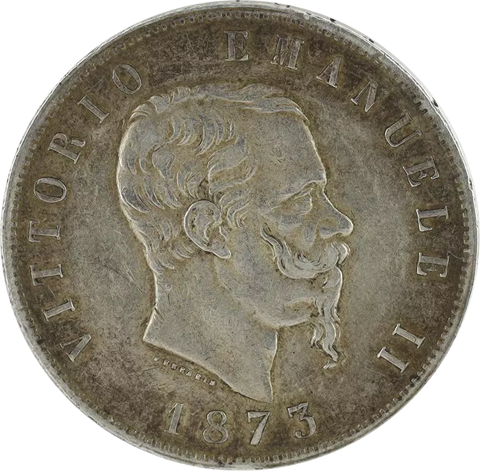 Home > > Italy 5 Lire Vittorio Emanuele II - 1873 M BN - Milan - Silver - KM.8.3