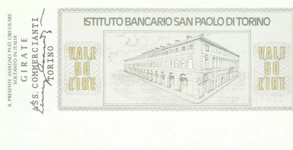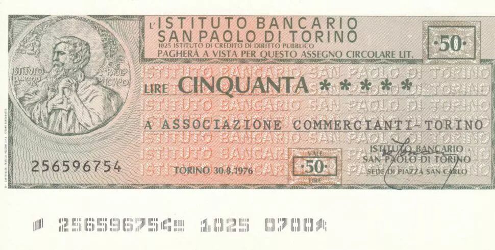 Home > World Banknotes > Checks and Traveler's Checks > Italy 50 Lires Istituto Bancario San Paolo di Torino - 1976 - UNC