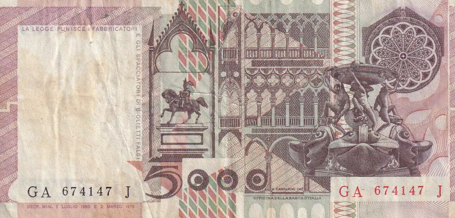 Banknote Italy 5000 Lire - Man - 1980 - Serial GA - P.105c