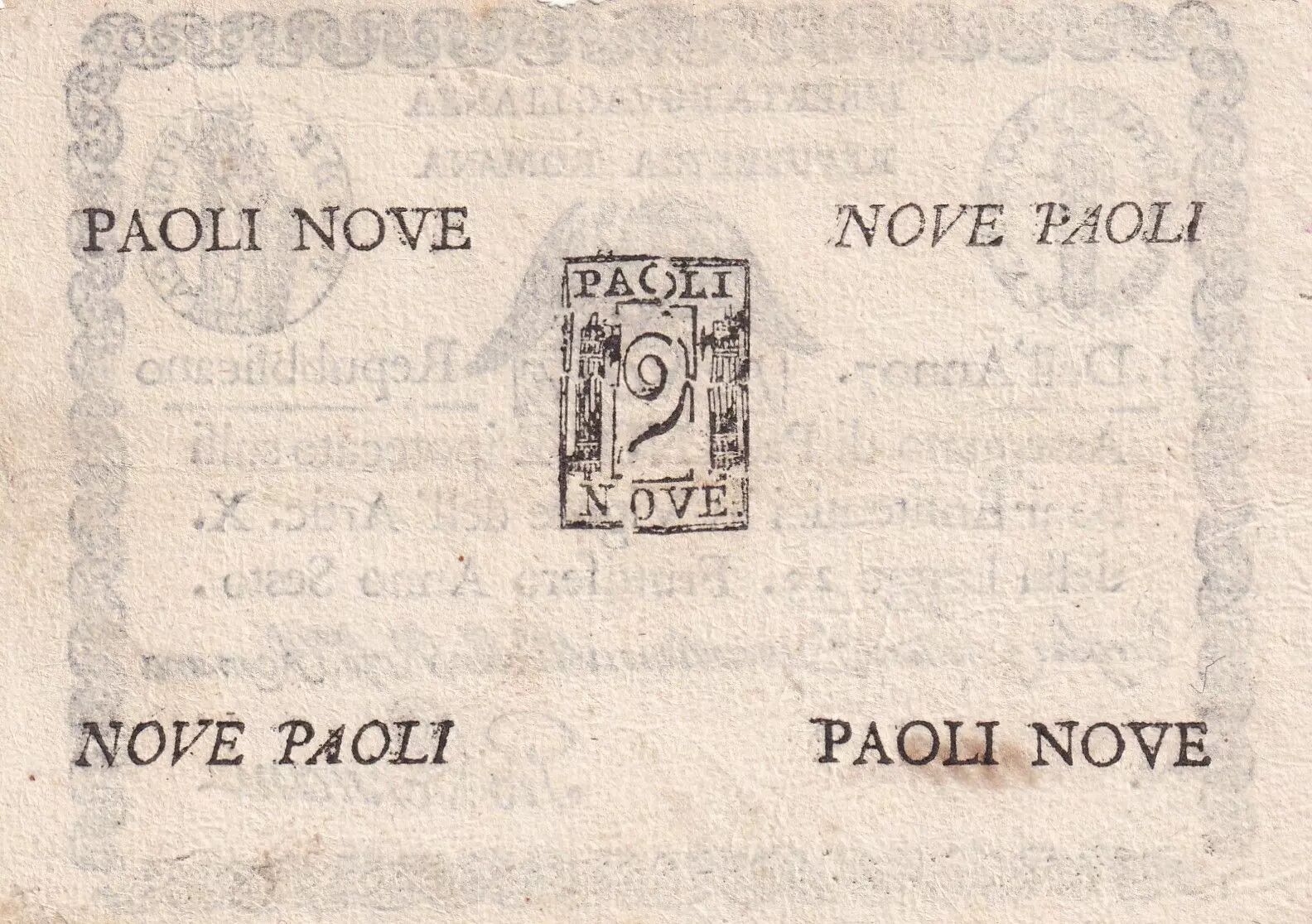 Banknote Italy 9 Paoli Repubblica Romana - 1798