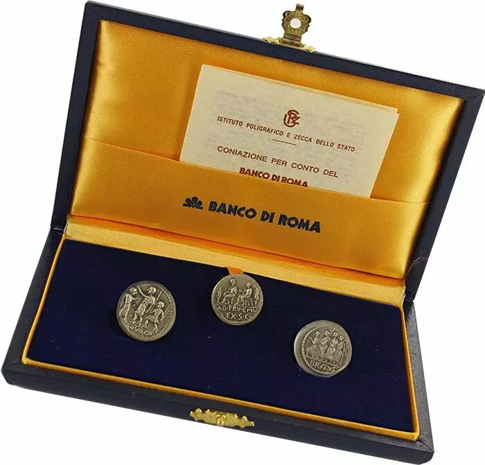 Box set including 3 silver medals - modern reproductions - issued in 1987 by the Banco di Roma.