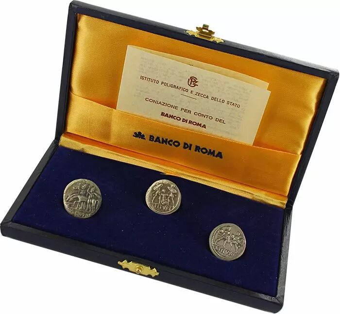 Box set including 3 silver medals - modern reproductions - issued in 1985 by the Banco di Roma.
