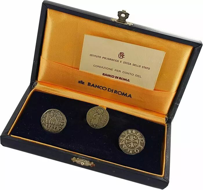 Box set including 3 silver medals - modern reproductions - issued in 1990 by the