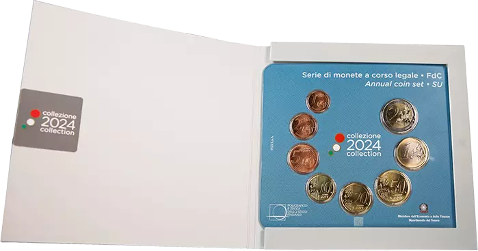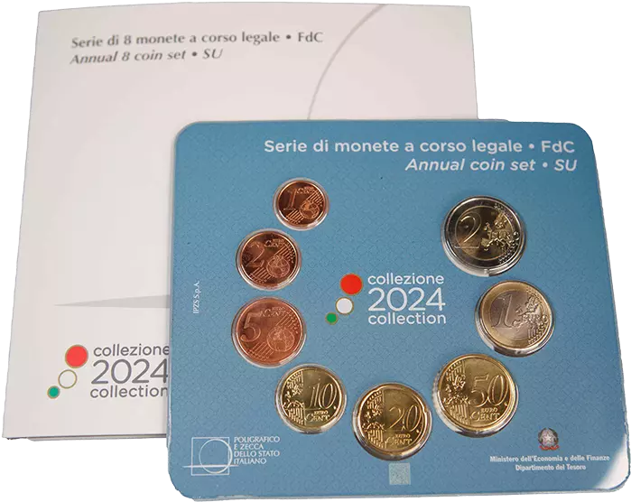 Contains 8 coins from 1 cent to 2 euros in the year 2024.