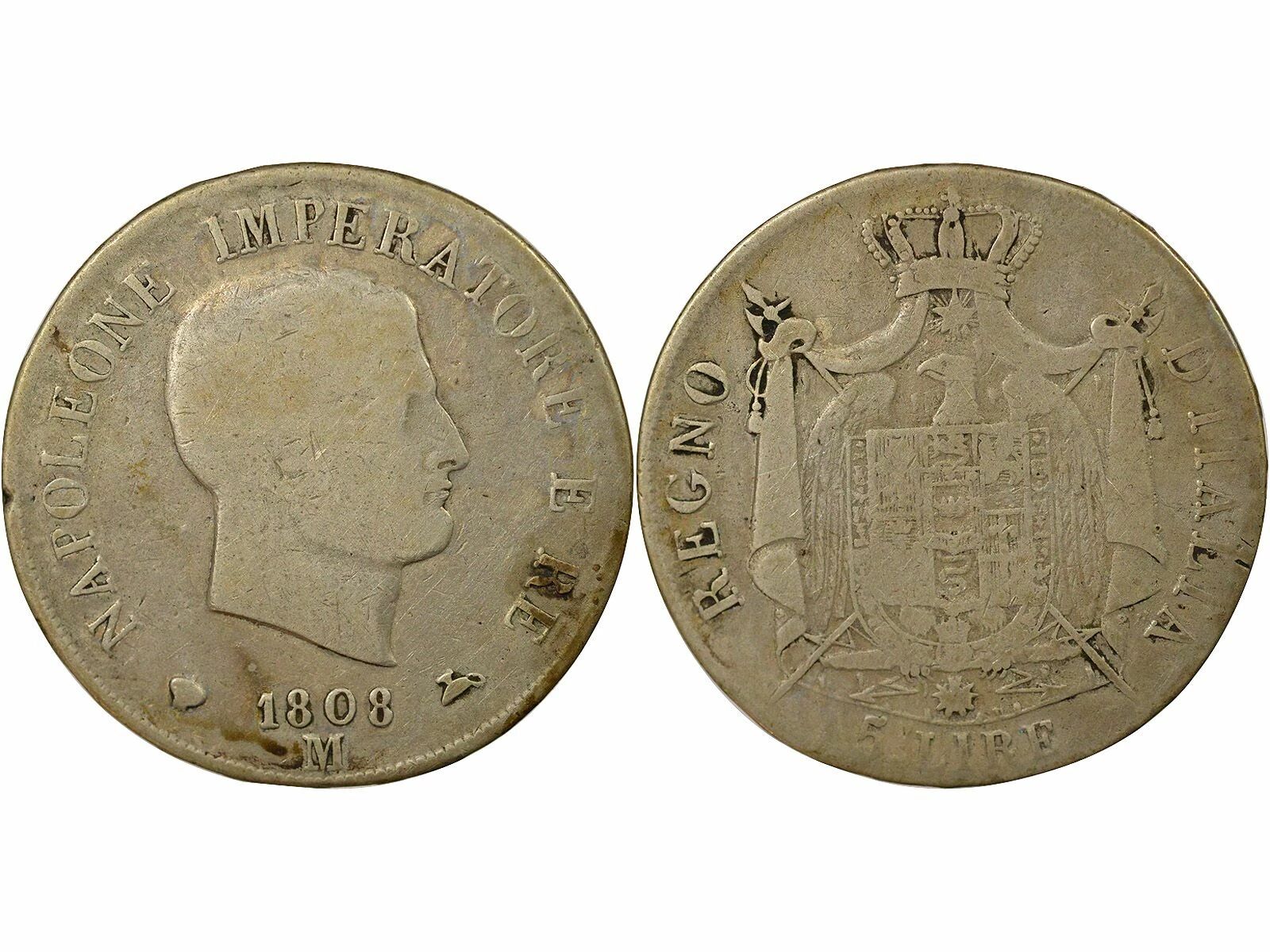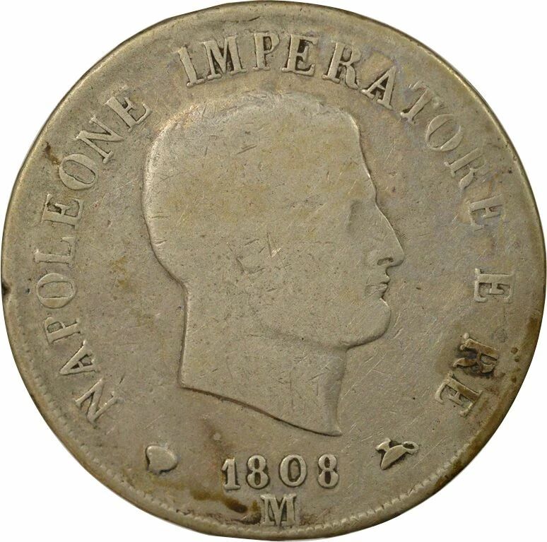 Coin Italy Napoleon I - 5 Silver Lire - 1808 M Milan