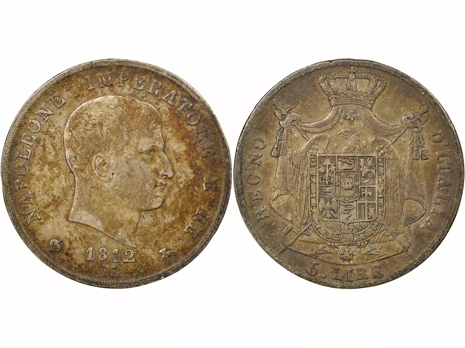 Coin Italy Napoleon I - 5 Silver Lire - 1812 M Milan
