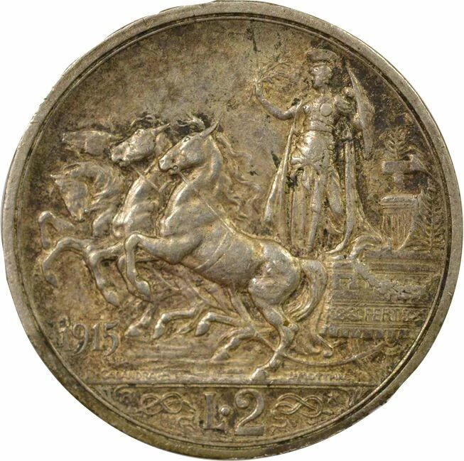 Coin Italy Vittorio Emanuele III - 2 Silver Lira - 1915 R Rome