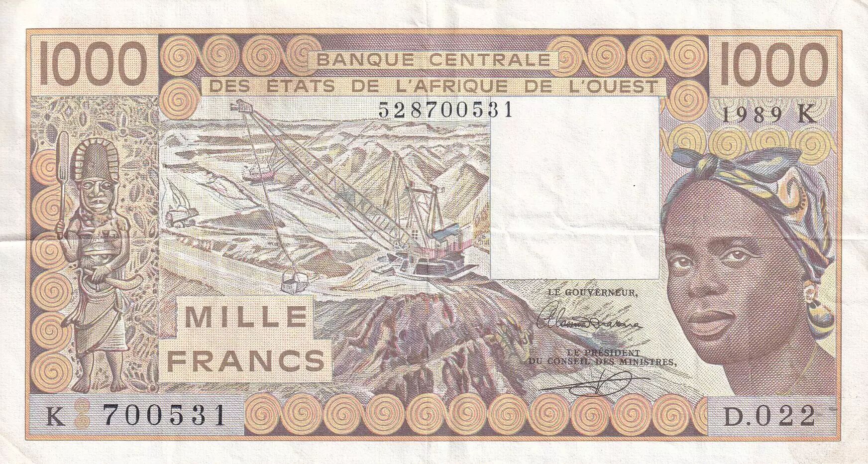 Banknote Ivory Coast 1000 Francs - Woman - 1989 - Lettre K (Senegal) - Serial D.022 - P.707Ki