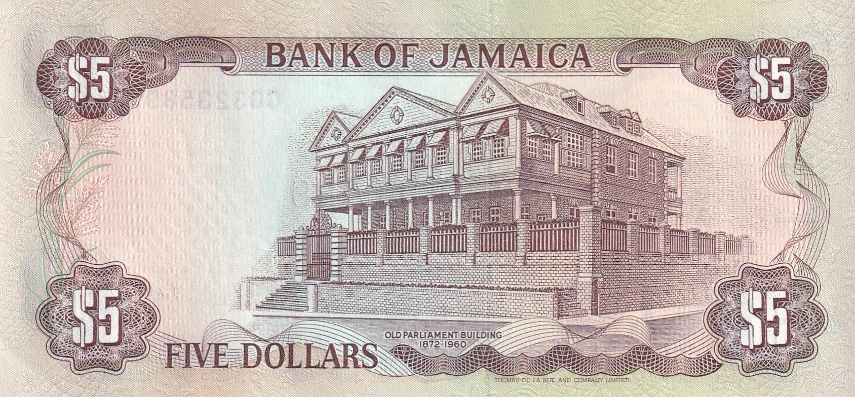 One side of the banknote is adorned with a portrait of Norman Manley, an important political figure in Jamaican history. The other side of the banknote depicts the old Jamaican Parliament building, a building that testifies to the country's political and institutional history.